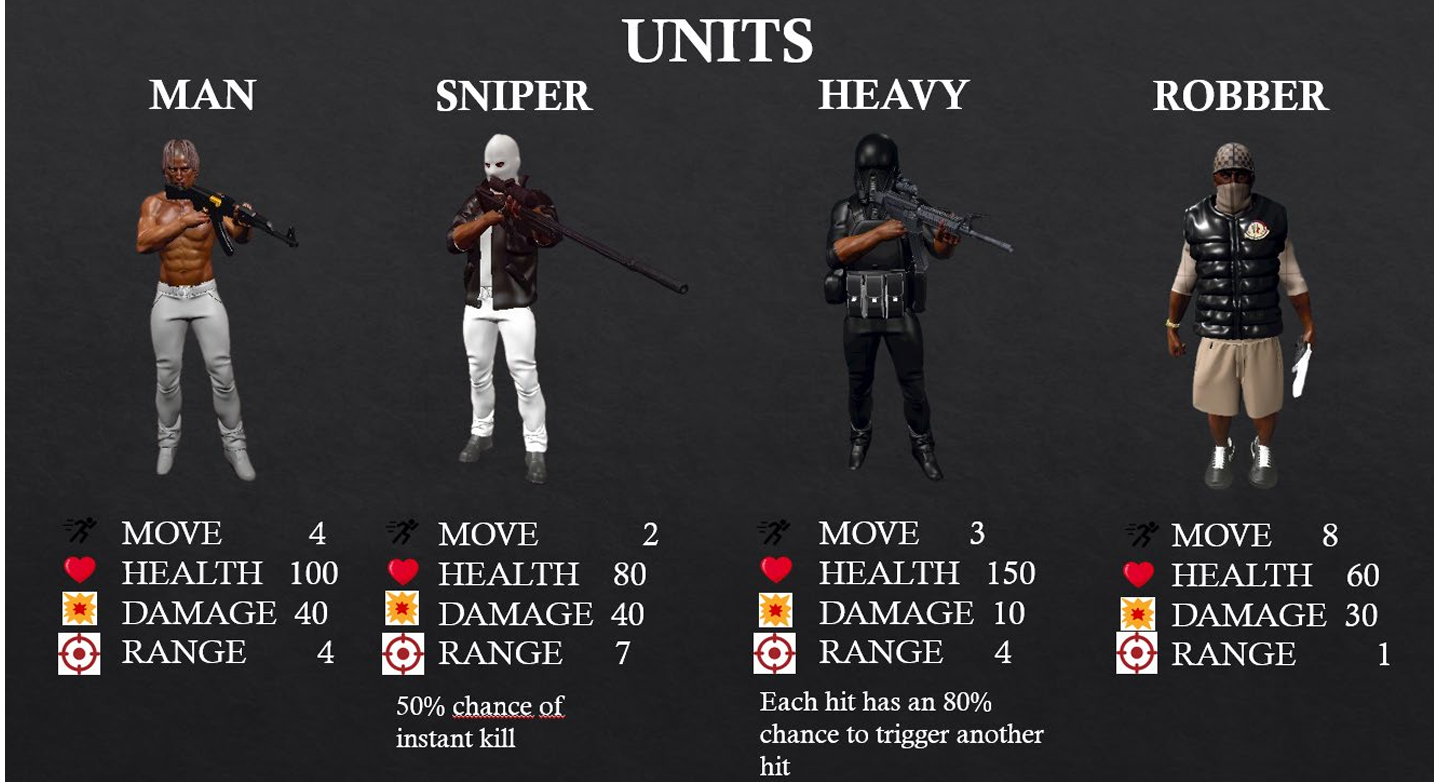 - High-Stakes Combat: Attacks are governed by hit probabilities based on distance and unit types, decide whether to stay safe or push for a high-damage, close-range strike.
